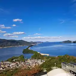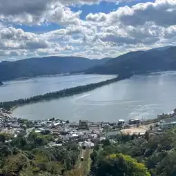 The most iconic way to experience Amanohashidate is through "Matanozoki"! I took the cable car up to the Kasamatsu Park observation deck, where I joined others in bending over to view the sandbar upside down through my legs. Amazingly, this perspective truly makes it look like a "bridge to the sky," a sight of unparalleled grandeur.
