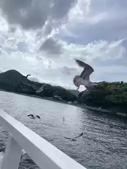 • On a large pleasure boat (1,200 yen), many seagulls will approach you. If you prepare food (such as shrimp crackers) in advance, you can feed them directly from your hand, which is sure to excite both children and adults! It also makes for great photos.