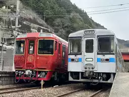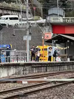 This is the station that you must pass by for the Oboke Gorge sightseeing boat. It is a small station with only one station attendant, and it can be said to be an unmanned station. If you buy a JR pass, the express train will stop there. On that day, I took the train from Marugame Station to Oboke Station, which was about a 2-hour ride.
