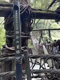 This suspension bridge is woven from shirakuchi vines and sways a lot, with gaps in the flooring that make it feel quite thrilling.