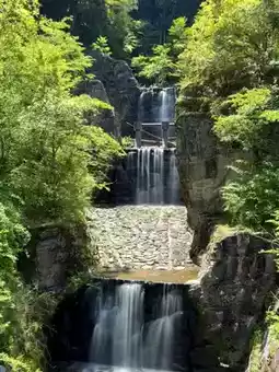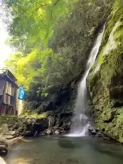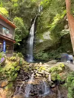 After the arduous journey to the Iya Vine Bridge, it would be a shame to leave after just seeing the bridge. Crossing the 45-meter-long vine bridge leads you to the Biwa Waterfall, a 50-meter-high cascade. Legend has it that during the Genpei War, the defeated Heike clan fled to the deep mountains and would gather here to play the biwa, soothing their homesickness for Kyoto.