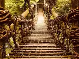 ✅ Your feet on the **vibrating vine bridge** mid-crossing
