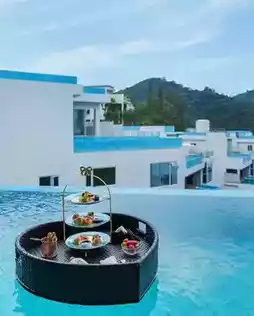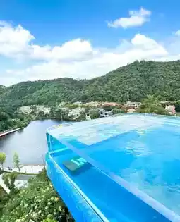 The hotel features ten distinctive attractions, including treetop cabins, cliffside pools, heart-shaped pools, etc. Among them, the 33-meter-high suspended glass pool is the first of its kind in Asia and is extremely photogenic.