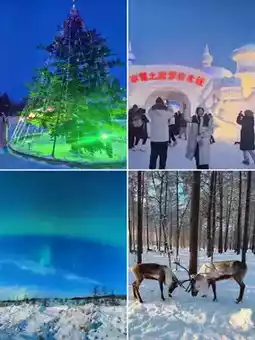 ✔️Mohe: A mysterious place, feel the solemnity of the northernmost outpost, check in at Christmas Village to find Santa Claus and reindeer, send postcards with blessings to your loved ones from the northernmost post office, and join the bonfire party at Seven Star Square at night.