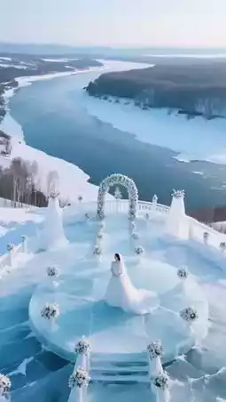 Wear a red cloak to take photos at the ice wedding square, with the China-Russia border marker in the background
