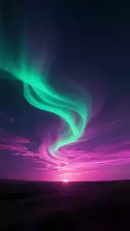 It rose from the horizon, like green silk swirling in the night sky, suddenly bursting into pink and purple ripples.