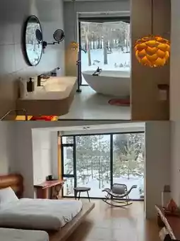 Wake up kissed by the morning sun, open your eyes to a “living painting”; in the evening, the lake glows golden. Sit by the window sipping hot tea, watching the sky darken... This slow life lets me daydream all day long!