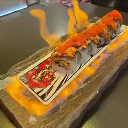 When served, the waiter will light the fire, the fire melted the white sugar on the surface of the salmon roll, slowly made into a golden caramel, slightly crispy caramel surface, with slowly roasted with the fire fatty salmon, the two taste surprisingly match, caramel sweetness with salmon grease aroma, perfect match!