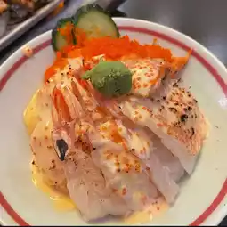 There are nine ingredients, namely scallops, sushi ginger, toga, seasonal fish, crab meat, peony shrimp, seaweed, salmon and salmon seeds. Salmon and red shrimp are lightly roasted with fire.