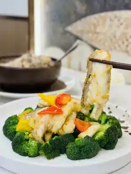 The fried lobster balls with broccoli are quite large 😎 Six pieces of lobster meat are surrounded by crisp broccoli 🥦 😁 The lobster fish flavor is rich 🥰 The fish skin has a lot of collagen and is smooth and tough 😍 It is completely boneless to eat very rest assured 🤗