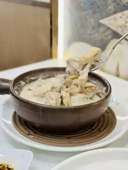 Taro smooth chicken pot hot served 🤗 Taro slow cooked becomes soft and fragrant 😋 chicken entrance tender and smooth 😌 plus coconut flavor of the dish sauce 😁 really can send several bowls of rice 👍 winter eat is the best 😋