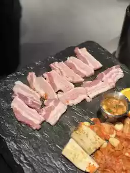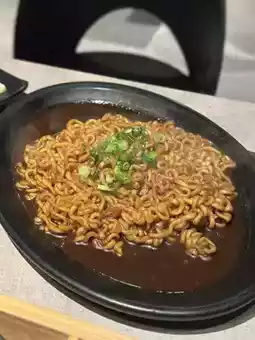 Chewy rice cakes combined with rich cheese and pork belly create a strong Korean flavor. Highly recommended to order and try.