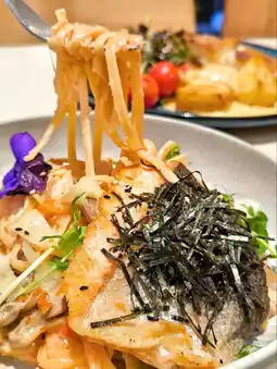 ✨Pan-fried salmon with mentaiko cream sauce and linguine $138