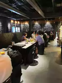 The restaurant environment is spacious and comfortable, decorated with a Jeju Island volcanic landscape theme, as if you are inside a volcanic rock cave. Each table is equipped with a custom Korean volcanic stone grill plate, whose natural pores evenly absorb grease, adding a unique mineral aroma during grilling.