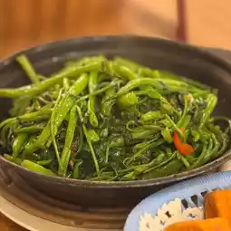 The flying sky water spinach pot is very flavorful, stir-fried with a strong wok hei, salty and fragrant.