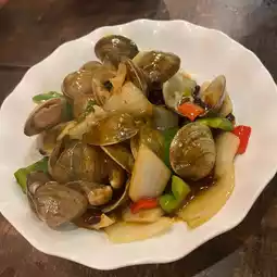 The stir-fried clams with black bean and chili are very flavorful with plenty of wok hei