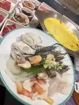 Tonight, I went to Mong Kok for a Taiwanese hot pot buffet. Wow! The place was packed, but luckily we had a reservation. The staff quickly arranged a table for us, and we immediately chose the soup base. Since I don't like spicy food, I opted for the Golden Soup Fish Maw Pot. The soup was incredibly rich and aromatic, with plenty of ingredients!