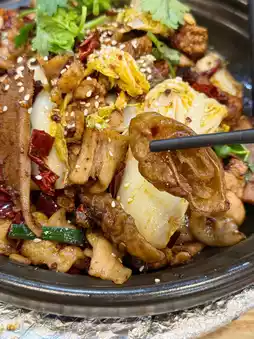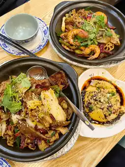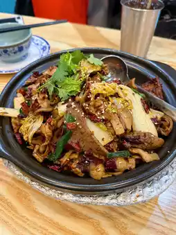 A friend recommended this restaurant specializing in spicy dishes, so while strolling around Mong Kok today, I decided to stop by for dinner 😋. I ordered their signature hot pot, which was absolutely amazing. You can choose from a variety of ingredients, and I picked pork belly slices, beef tongue, pork intestines, and baby bok choy. The pot was generously portioned, and every bite was infused with the spicy flavor and rich hot pot sauce. The pork belly slices were perfectly balanced with fat and lean meat, tender and soft; the beef tongue was chewy and bouncy; the fried pork intestines were soaked in the sauce, flavorful without any unpleasant odor; the fried tofu had a slightly crispy exterior and a soft, smooth interior; and the baby bok choy was crisp and sweet. You can even customize the level of spiciness.