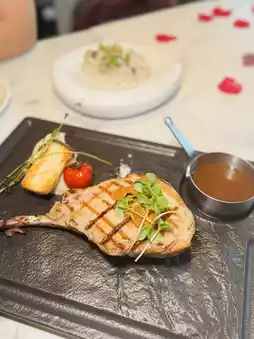 Both mother and daughter love steak, how can we not order it 😛! Because my mom couldn't eat too raw, I ordered 70%. The steak has a faint charcoal flavor and is good with sauce or garlic 👍🏻.