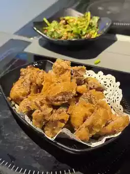 Pepper and salt fresh bacon, fried barrel oysters, spicy squid beard, peppered egg, shrimp toast, fried ghost stuffed squid rolls, fried ghost stuffed squid rolls with shrimp toast, royal crispy fried beef brisket. Really everything was good, basically as soon as it was served, it was cleared in seconds! Colleagues joked that it was a snack that was completely delayed by the chicken pot.