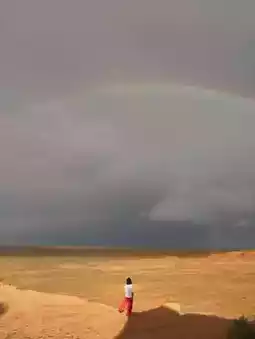 A massive limestone cliff eroded by wind and water. The blend of white and red hues creates a breathtaking view, especially during sunrise and sunset.