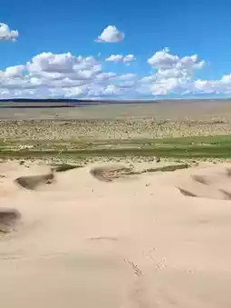 A deep gorge located in the Gobi Desert. Even in midsummer, ice remains in this cool valley, making it a popular trekking destination.