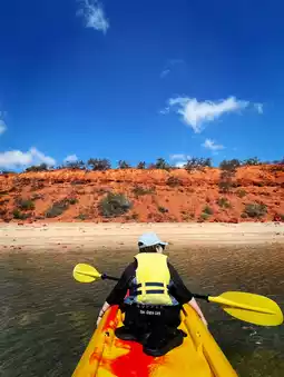 Right in front of the hotel lies a serene and beautiful sea where you can enjoy kayaking and stand-up paddleboarding (SUP). We rented a two-person kayak and a single kayak to head towards the red rock national park. Despite a slight headwind, we took breaks and reached our destination in just under an hour. The clear blue sky contrasted beautifully with the vivid red rocks, creating a stunning view. Although my arms were tired due to my lack of exercise, it was absolutely worth the effort!