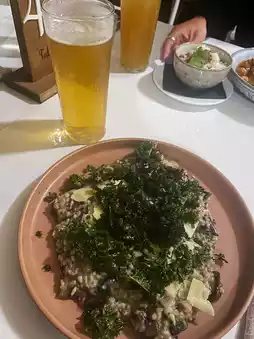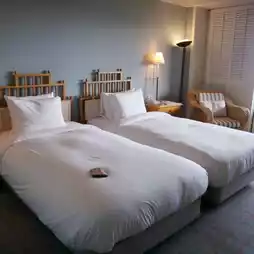 The hotel features two restaurants. For breakfast, we had smoked salmon eggs benedict, and for dinner, we enjoyed mushroom risotto. We also ordered burgers and French fries from the bar. Everything was delicious, making dining at the restaurants worthwhile! By the way, the bar offers happy hour deals, so you can enjoy beer at a discounted price.