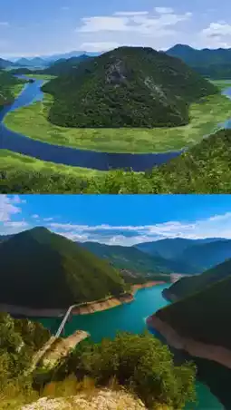 🌊 Rijeka Crnojevica River & Skadar Lake National Park, a small river winding through mountains and small villages, is a popular photo spot, offering picturesque river bends. You can also enjoy a boat trip to enjoy nature on Lake Skadar, filled with waterfowl and offering a peaceful atmosphere.