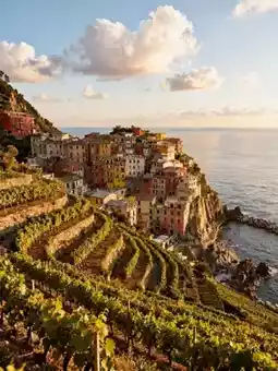 If you prefer quiet, visit Corniglia—the only village in Cinque Terre not by the sea, hidden atop the cliffs. Walk up the stone steps, passing vineyards where locals warmly offer homemade wine tastings. The sweet and sour flavor is full of sunshine. From the village’s high vantage point, you can see the other four villages scattered along the coastline: blue sea, green mountains, colorful houses, forming a breathtaking panoramic view.