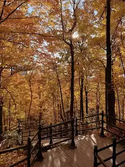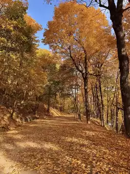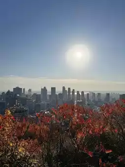 The maple leaves covering the hills range from orange-red to golden yellow, like a spilled palette of colors. Every step you take reveals stunning fall scenery. Climbing up along the trail, the wind rustles through the leaves, and you can even catch a distant view of Montreal’s red rooftops, creating an incredible atmosphere 📸