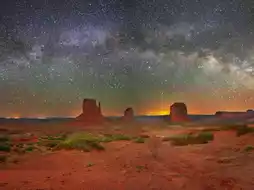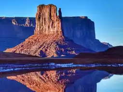 Monument Valley is a region of the Colorado Plateau characterized by a cluster of vast sandstone buttes, the largest reaching 1,000 feet above the valley floor. It is located on the Arizona-Utah state line, near the Four Corners area. This iconic landscape has been featured in numerous films and is known for its stunning red hues and dramatic scenery.