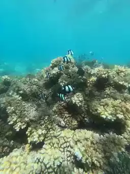 The water is warm and pretty clear. There are really nice reefs, many tropical and colorful fishes and corals.