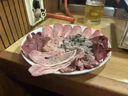 I ordered a medium-sized plate of salt-grilled meat, tempura meat, pickled vegetables, and beer. I especially like the liver.