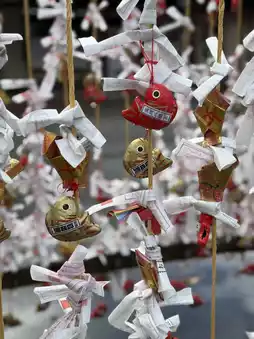 There are many highlights, such as auspicious sea bream motifs, cute omikuji (fortune slips), and pinwheels! The grounds are very spacious! In autumn, the autumn leaves are beautiful.