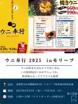 A limited-time BBQ featuring sea urchin is coming to Moriyama...⤵︎ ︎