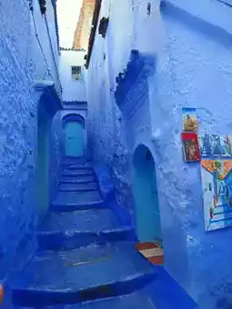 🩵Known as the "Blue Pearl of Morocco," Chefchaouen is famous for its narrow streets, charming stairways, and buildings painted in every shade of blue imaginable.