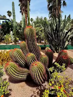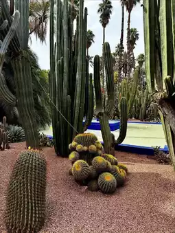 Le Jardin Majorelle is truly a gem in Marrakesh that feels like stepping into a vibrant painting. The gardens are full of exotic plants, striking cacti, and splashes of the iconic Majorelle blue that immediately catch your eye. Walking through the pathways feels peaceful, with the sound of birds and fountains creating a calm atmosphere in the middle of the busy city.