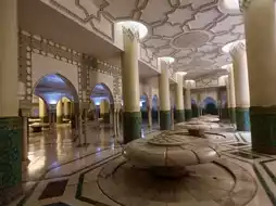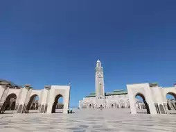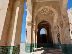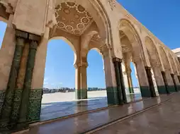 As waves crash gently against the base, the setting feels both powerful and peaceful. The combination of ocean breeze, soft light, and exquisite artistry creates an unforgettable atmosphere. Standing before the mosque, you feel the harmony between nature and architecture, where faith and beauty meet under the endless Moroccan sky.