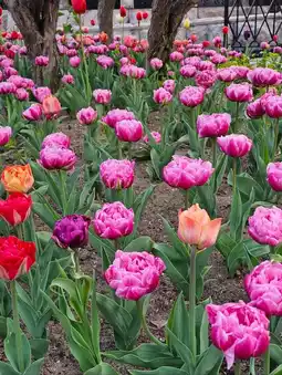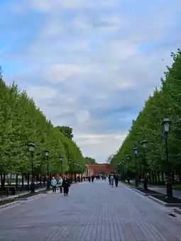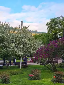 When I visited in the second week of May, the garden was filled with colorful tulips and trees with purple, pink, and white flowers. I don't know much about Russia, so I didn't know what the monuments meant, but I was sure that this garden was beautiful and great for a walk.