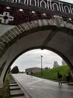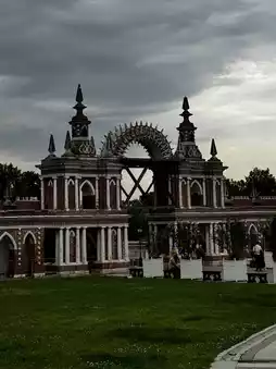 Vaulted galleries, elegant bridges, a triumphal arch, cascading ponds, and the famous grotto-restaurant “Autumn Garden” — all part of Tsaritsyno’s magic.