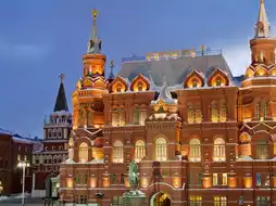 The Moscow State Historical Museum is a historic, dark red Gothic-style building located on Red Square. It exhibits over 45 million Russian historical items, including antiquities, documents, weapons, art, and priceless treasures, telling the story of the country's history. Located in the heart of Moscow, adjacent to Red Square, the State Historical Museum of Russia stands out with its elegant red-brick Neo-Gothic building. Inside, it houses over 4.5 million artifacts, which tell the story of Russia from prehistoric times to the present.