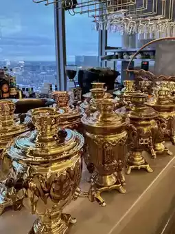 🔥 At the heart of the restaurant is a real Russian stove where bread, pies, cabbage soup, and porridge are baked and simmered. There are also shiny copper samovars serving aromatic tea with jam and honey.
