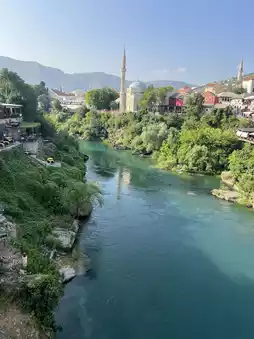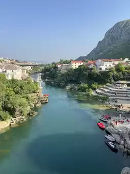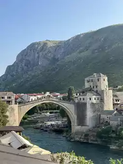 As you cross the bridge, the sound of the river flowing beneath you and the view of the surrounding historic houses create a captivating atmosphere. Standing on the bridge and admiring the view, especially at sunset, is a unique experience. Easily accessible by foot from Mostar city center, the bridge is a must-see for any visitor to Bosnia and Herzegovina.