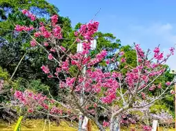Taiwan cherry is a unique variety found in Okinawa, characterized by its deep crimson petals and vibrant color, making it truly eye-catching. If you visit at the end of January, you might also have the chance to participate in the annual "Yaedake Cherry Blossom Festival" and immerse yourself in the atmosphere of traditional Japanese festivities.