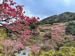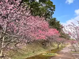 Yaedake Sakura Forest Park, located in Motobu Town in central Okinawa, is a great spot for family cherry blossom viewing. The park is home to over 7,000 Taiwan cherry trees, which start blooming as early as mid-January, making it one of the earliest cherry blossom viewing destinations in Japan. The outdoor environment is relaxing, with fresh air and pink cherry blossoms lining both sides of the mountain road, creating a breathtaking scene!