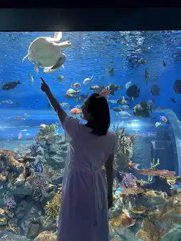 1. Encounter giant whale sharks without diving! Enjoy a refreshing drink at the second-floor café while watching a live version of "Finding Nemo."