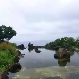 I cautiously walked through the rain along the small path next to the road to visit Okinawa Ocean Expo Park, which houses the Churaumi Aquarium, a 15-minute walk away.