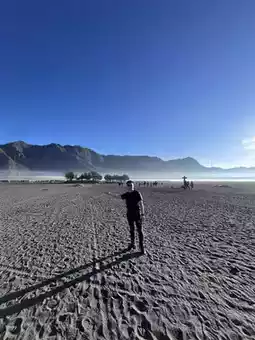 Stepping onto Mount Bromo feels like landing on an alien world, a place where the Earth’s crust seems to have cracked open, revealing an otherworldly landscape of smoking craters, endless ash plains, and towering rock formations. The ground beneath your feet is a mixture of fine volcanic dust and hardened lava flows, stretching into the horizon like the barren surface of Mars.