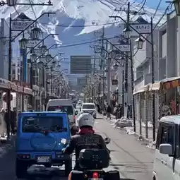 [New World Cheers Street] The exotic street echoes the distant views of Mount Fuji. [Kawaguchiko Station] and [Mt. Fuji Station] are very conveniently located, and you can have a panoramic view of Mount Fuji from here.